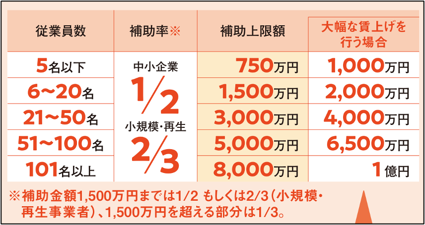 補助上限額、補助率はどちらも同じとなっています。