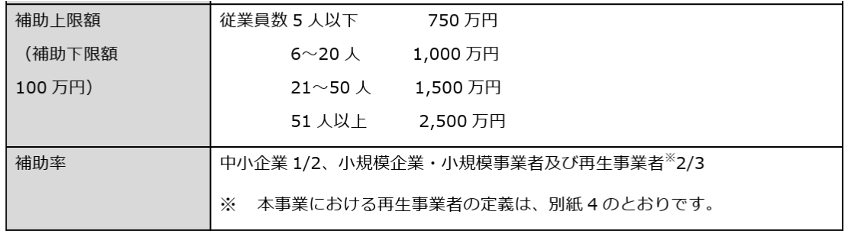 補助上限額、補助率は下記の通りです。